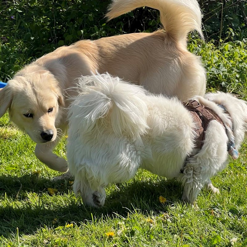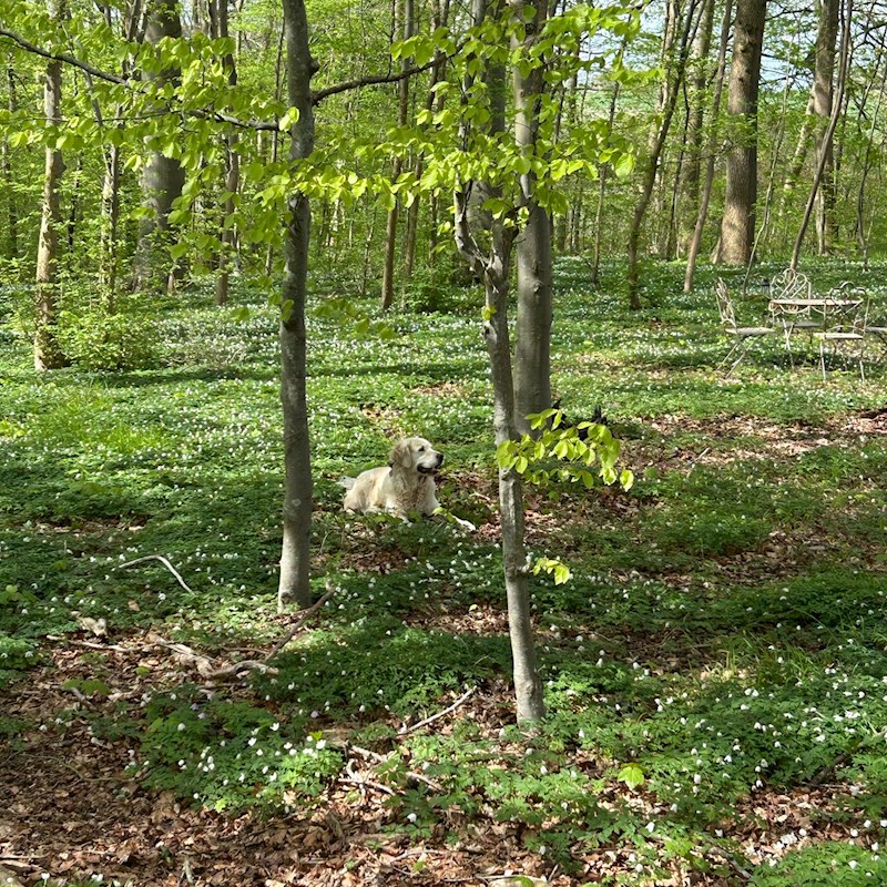 Vi tilbyder muligheden for at booke tid i vores indhegnede private hundeskov, som ligger som en del af vores store have. Hundeskoven er på 1,7 hektar og byder på masser af plads til leg, balanceøvelser og snuseoplevelser i naturskønne omgivelser. Skoven rummer også en bæk, så der er mulighed for våde eller mudrede poter – til stor fornøjelse for mange hunde!